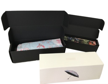 קופסאות אריזה אישית מטרייה קמעונאית קופסאות גלי שחור עם כסף לוגו נייר כסף תיבות כרטיס שחור טהור