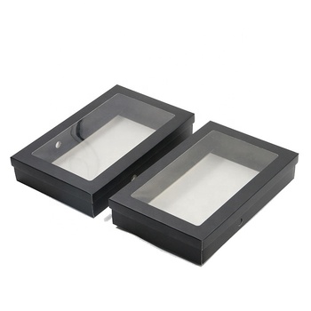 กล่องกระดาษแข็งสีดำพับได้พร้อมฝาปิดกล่องของขวัญกระดาษแข็งสีดำพร้อมหน้าต่างพีวีซี